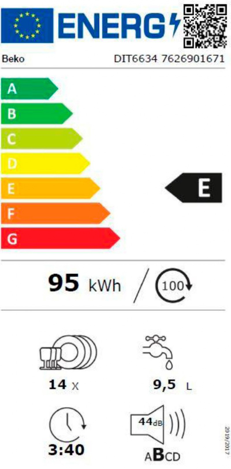 Energiahatékonysági osztály (skála) E (A-tól G-ig)
