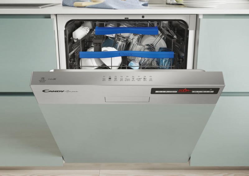 Hátralévő üzemidő kijelzése, indítási idő késleltetése, automatikus ajtónyitás a program végén, gyerekzár, só és öblítő utántöltésjelző, opcionális melegvíz csatlakozás