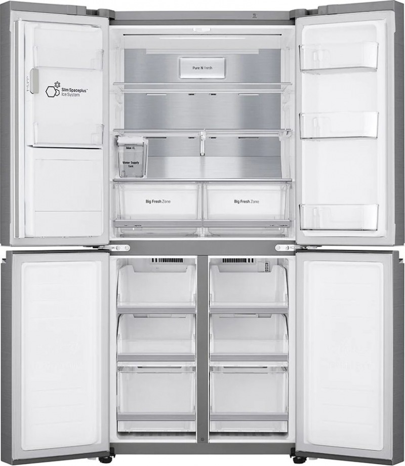 Ez a modern franciaajtós hűtőszekrény nagyon szórakoztató. A rekeszben apró vagy laza tárgyak találhatók extra tárolóhelyként, a nagyobb tárgyak a kihúzható rekeszben helyezhetők el és a SpacePlus® jégrendszer olyan ügyesen van beépítve a hűtőszekrény ajtajába, hogy a felső rekesz korlátozás nélkül használható.
